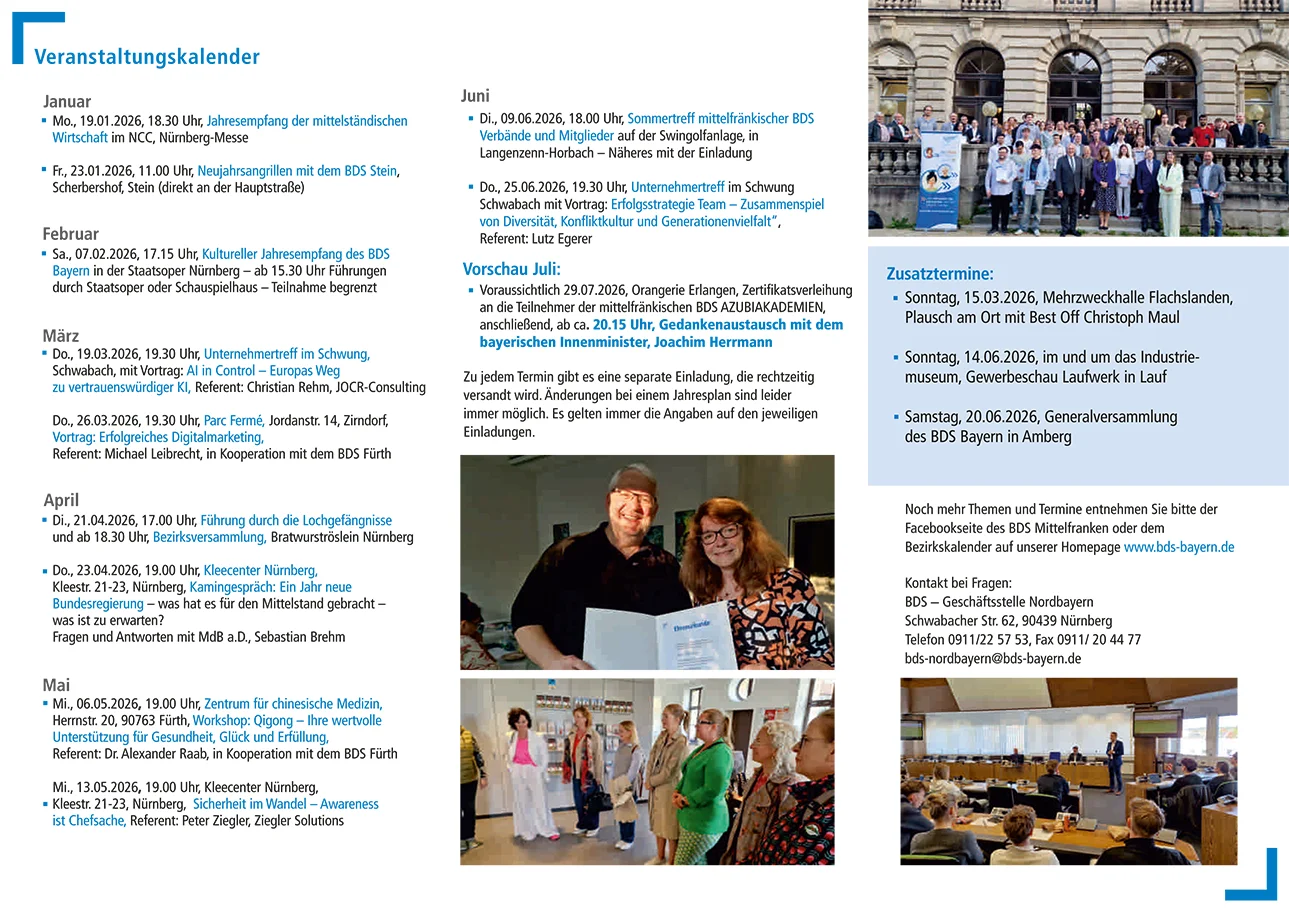 Das Aktivitätenprogramm des BDS Mittelfranken erstes Halbjahr 2026